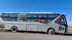 Сокулукта жол боюнда токтоп турган автобус таландыга учурап жатат