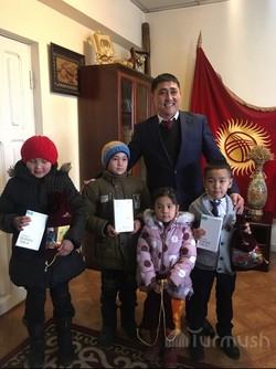 С.Жээнбековго кат жазган сокулуктук окуучулар президенттин белегин алышты