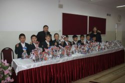 Сокулукта Белогорск санатордук мектептеги 125 балага жаңы жылдык белектер берилди