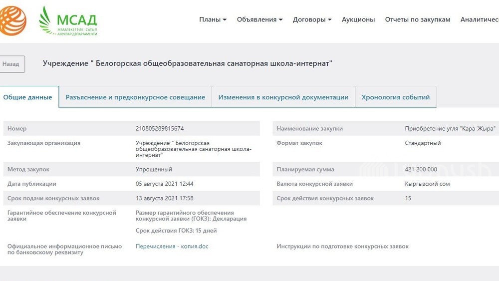 «Соцсети гудят»: Школа-интернат объявила тендер на закупку угля на сумму около половины миллиарда сомов